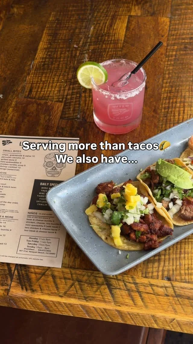 TACO COMBOS ARE SERVED WITH MEXICAN RICE + BLACK BEANS OR A BAJA SIDE SALAD WITH YOUR CHOICE OF HANDMADE CORN TORTILLAS, FLOUR TORTILLAS, OR LETTUCE WRAPS
